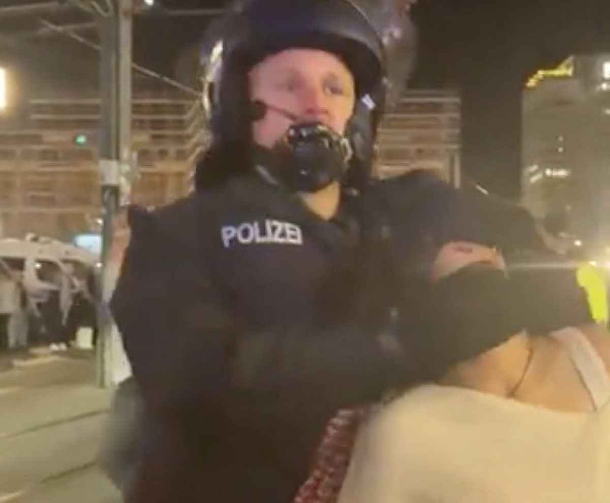 Alman polisinin müdahalesi ise olaylı oldu. İki polisin bir kadın göstericinin koluna girip gözlerini kapattıktan sonra boynunu geriye bastırarak gözaltına alması tepkilere neden oldu.