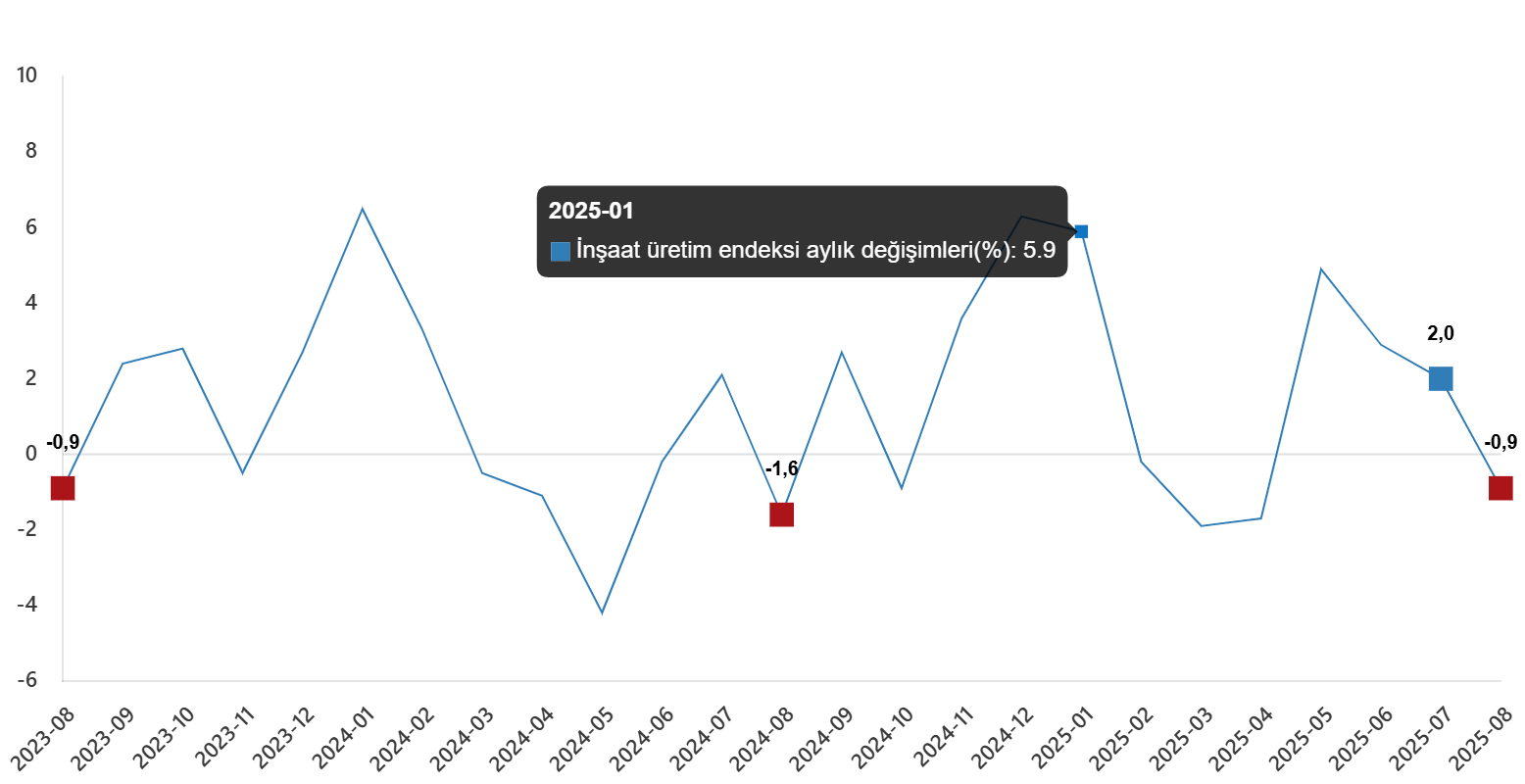 İnşaat üretim endeksi aylık değişimleri(%), Ağustos 2025